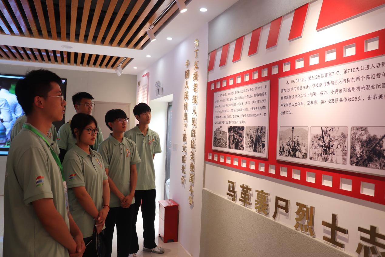 实践队全体成员怀着对革命前辈的崇高敬意观看了援老抗美防空作战历史纪录片、参观了烈士纪念馆,认真聆听了纪念馆解说员对革命先烈英勇事迹的解说。