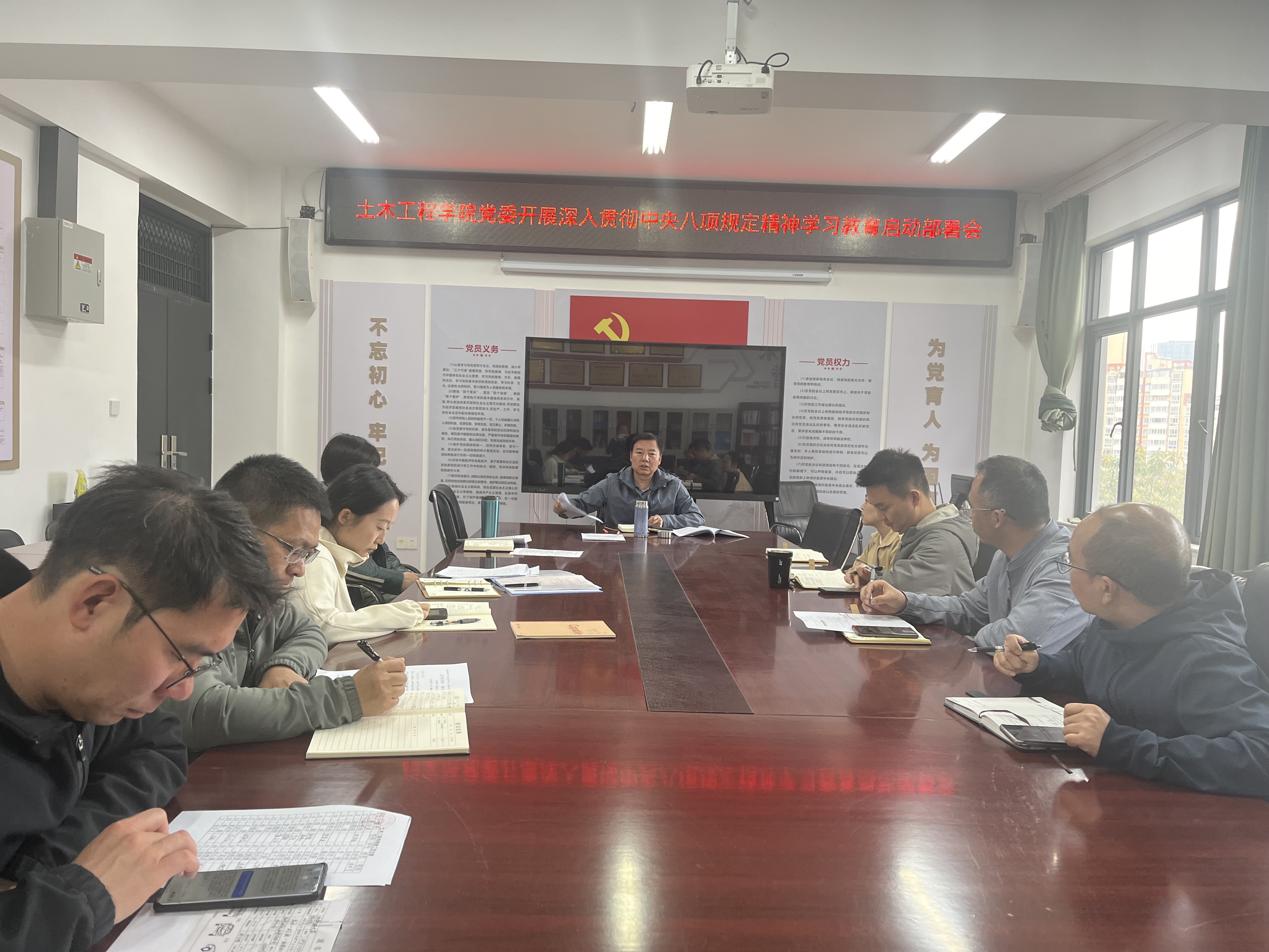 会上学习传达了习近平总书记关于深入贯彻中央八项规定精神学习教育的重要讲话和重要指示精神、中共中央办公厅印发的《关于在全党开展深入贯彻中央八项规定精神学习教育的通知》,并对学校的启动部署会议精神和实施方案进行了传达和学习。