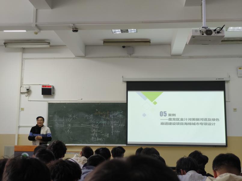 课程围绕海绵城市理念的深入理解、国际语境、国内政策、工程运用、技术要点以及实践案例等多个方面展开,深入浅出地讲解了海绵城市建设的核心要义和实施路径。汪振宇同志不仅从专业角度出发详细阐述了海绵城市理念在给排水工程设计中的具体应用,还结合就业岗位上的专业知识需求,为师生们提供了宝贵的实践经验和思考。