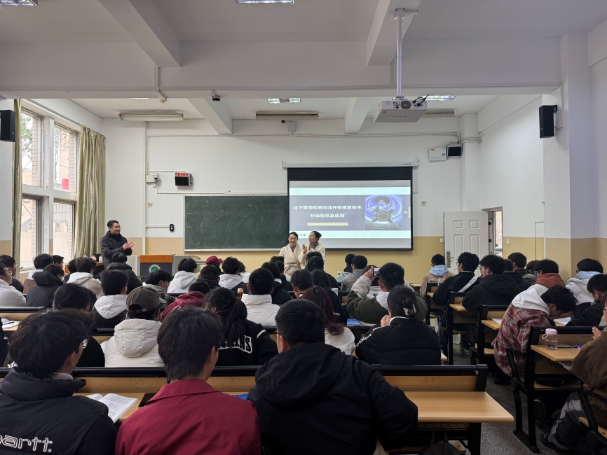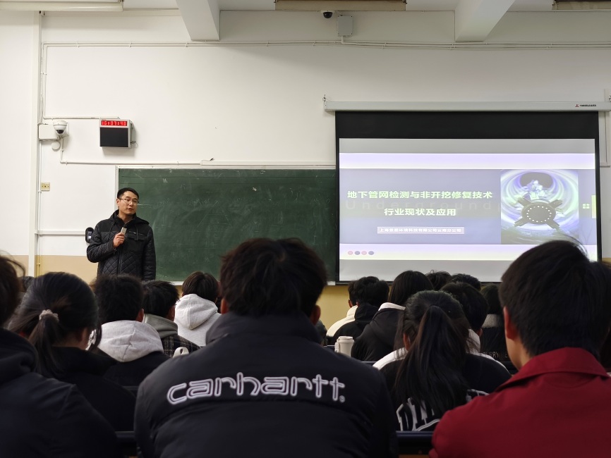 3月18日,sunbet申搏邀请上海景朋环境科技有限公司云南分公司总经理刘秋晨,为给排水科学与工程专业的师生讲授“地下管道检测与非开挖修复技术行业现状及应用”专题讲座。