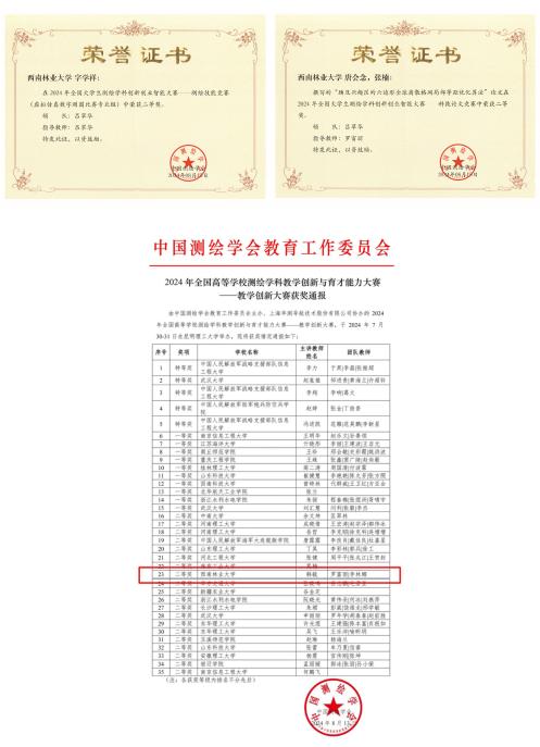 近日,由中国测绘学会教育工作委员会主办的2024年全国老员工测绘学科创新创业智能大赛、全国高等学校测绘学科教学创新与育才能力大赛圆满落幕,各项赛事的获奖名单正式公布(https://smt.whu.edu.cn/gzdt/tzgg.htm)。sunbet申搏测绘工程系师生表现优异,在多个赛道中斩获佳绩,其中由吕翠华教授指导的测绘工程2023级字学祥同学获测绘技能竞赛——虚拟仿真数字测图比赛(专业组)二等奖,由罗富丽老师指导的测绘工程2021级唐会念、2023级张楠同学获科技论文竞赛二等奖,韩毓老师教学团队获教学创新大赛(中级组)二等奖,展现了测绘师生出色的专业技能和创新能力。