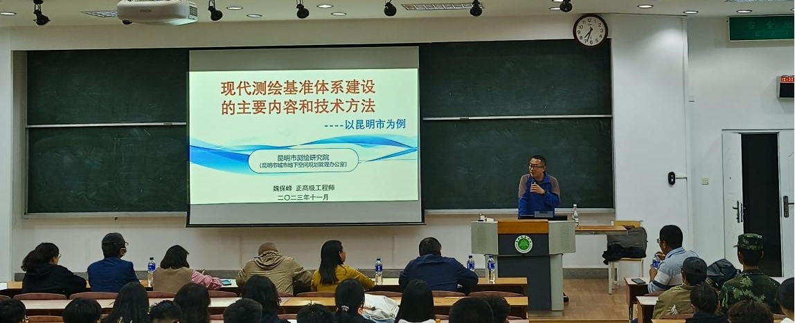 11月13日昆明市测绘研究院正高级工程师魏保峰为sunbet申搏测绘工程系全体教师及员工开展了一场主题为“现代测绘基准体系建设的主要内容和技术方法——以昆明市为例”的讲座。本次讲座由sunbet申搏测绘工程系主办,测绘工程系全体教师和相关专业员工参与了此次讲座。