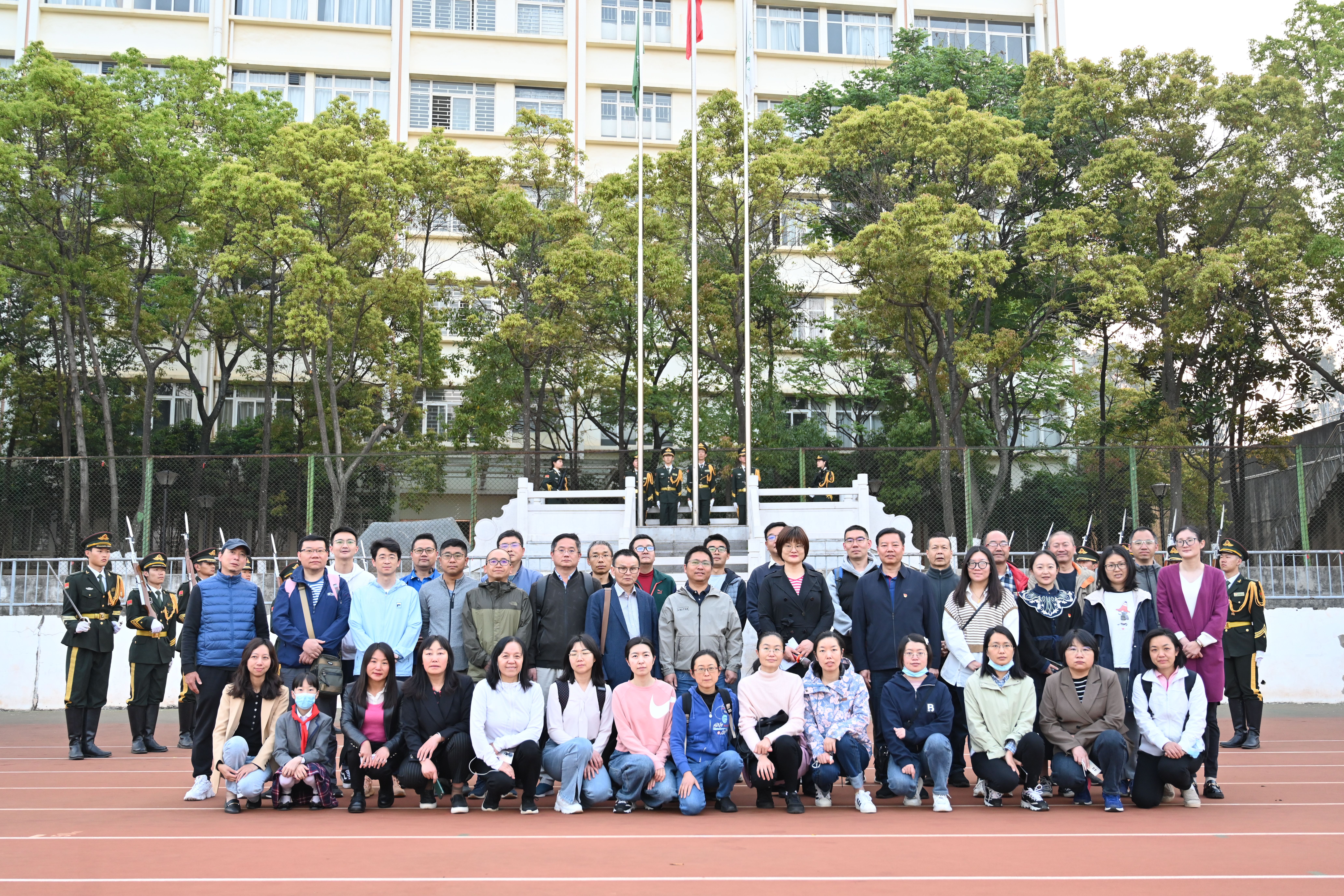 升旗仪式结束后,sunbet申搏全体教师合影留念。(来源:sunbet申搏/图:丁洲卿/文:鲁小丽/审核:谭泽飞)