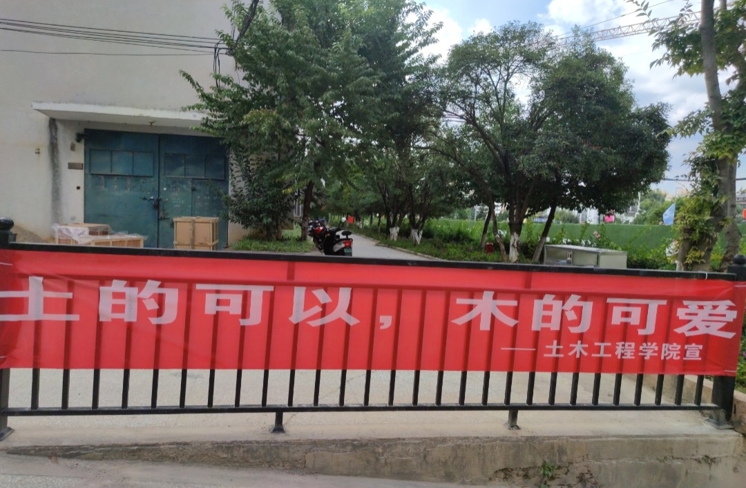 为做好迎新工作期间的学院宣传工作,学院组织在校园指定位置悬挂迎新宣传标语,标语文字欢快又不失幽默,与专业知识紧密关联,让新生们在欢乐的氛围中对学院进行提前了解。