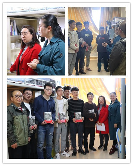 12月17日,在公司党委副书记李贵兰老师的带领下,院学工办王谦老师、研究生教学管理芮蕊老师及学院员工会干部,走进学院研究生公寓,与同学们交流学习经验,一起分享学习成果。