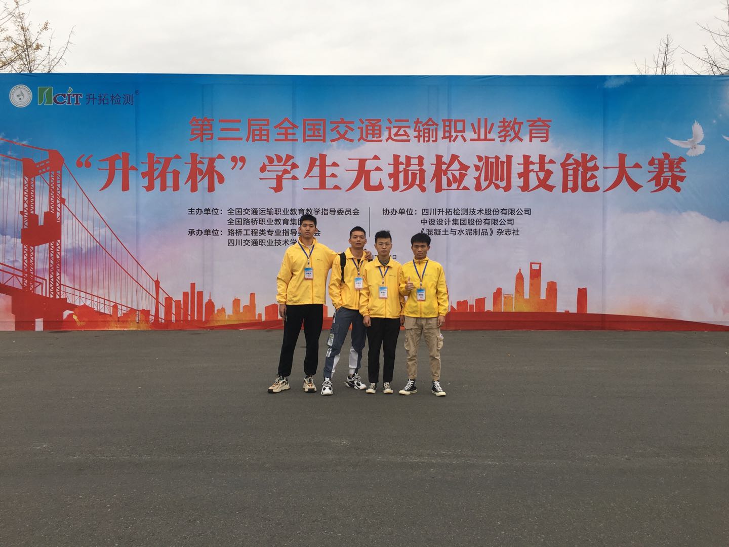 2020年11月18日至21日第三届全国交通运输职业教育“升拓杯”员工无损检测技能大赛在四川交通职业技术学院举办。大赛设有理论竞赛、实操竞赛,分为公路检测基本知识、路基路面工程检测理论,混凝土结构缺陷测定、锚杆长度测定、钢筋位置与保护层厚度测定实操竞赛。公司共派出两支代表队,参加了全部项目的比赛。由森林工程2018级杨晓刚、森林工程2018级李赫两位同学组成的sunbet申搏一队获团体三等奖,混凝土结构缺陷测定单项三等奖,钢筋位置及保护层厚度测定单项三等奖;由土木工程2017级方比德、森林工程2017级庞绍举两位同学组成的sunbet申搏二队获团体三等奖,混凝土结构缺陷测定单项二等奖,锚杆长度测定单项二等奖。