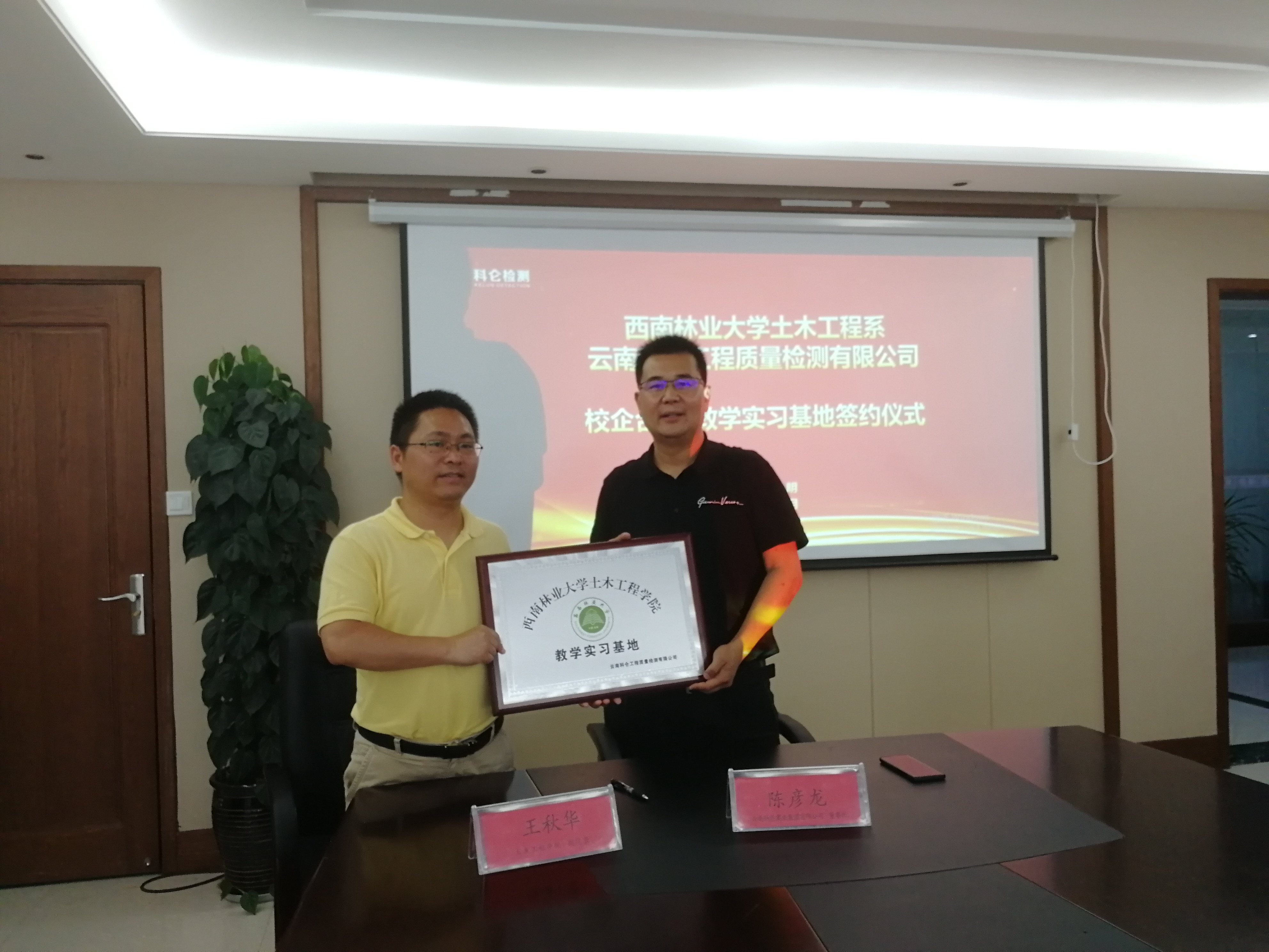 2020年6月18日上午,公司王秋华副经理带领土木工程系、森林工程系部分教师前往云南科仑工程质量检测有限公司就校外实习基地建设开展实地参观、座谈交流、协议签订及实习基地挂牌等活动。