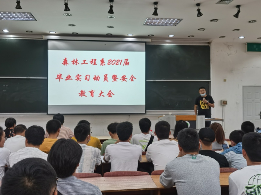 2020年7月30日上午9:00,森林工程系2021届毕业实习动员暨安全教育大会在第三教学楼阶梯教室103召开,对即将参加毕业实习的员工进行实习工作的动员和部署,并开展实习安全教育。