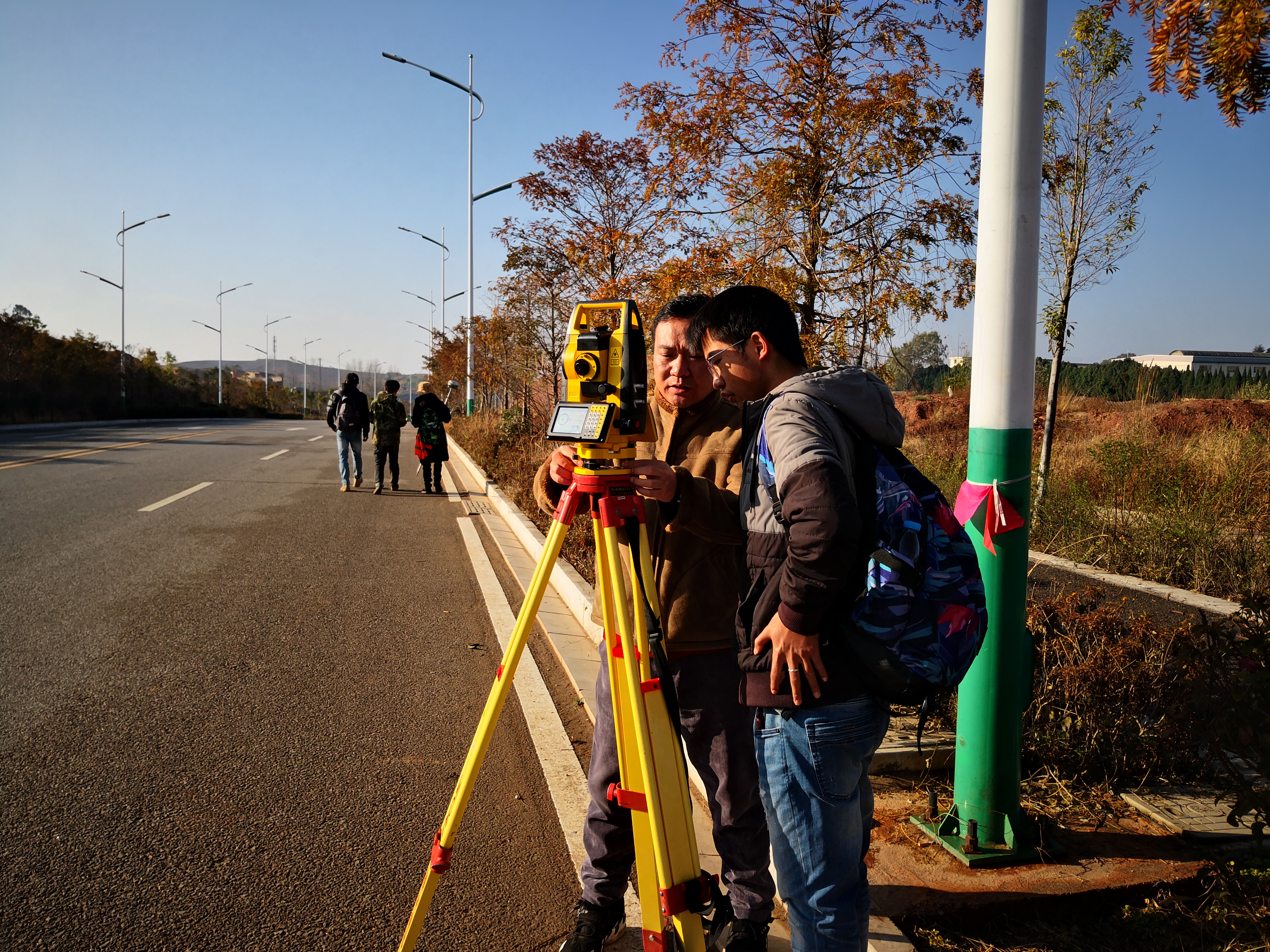 2019年12月19日上午在学院谭泽飞书记、张庆文副经理、教学秘书谢婷婷一行来到石林校区实习现场进行考察、指导。鼓励同学们努力学好测绘仪器操作、计算、绘图,打好基本技能功底。